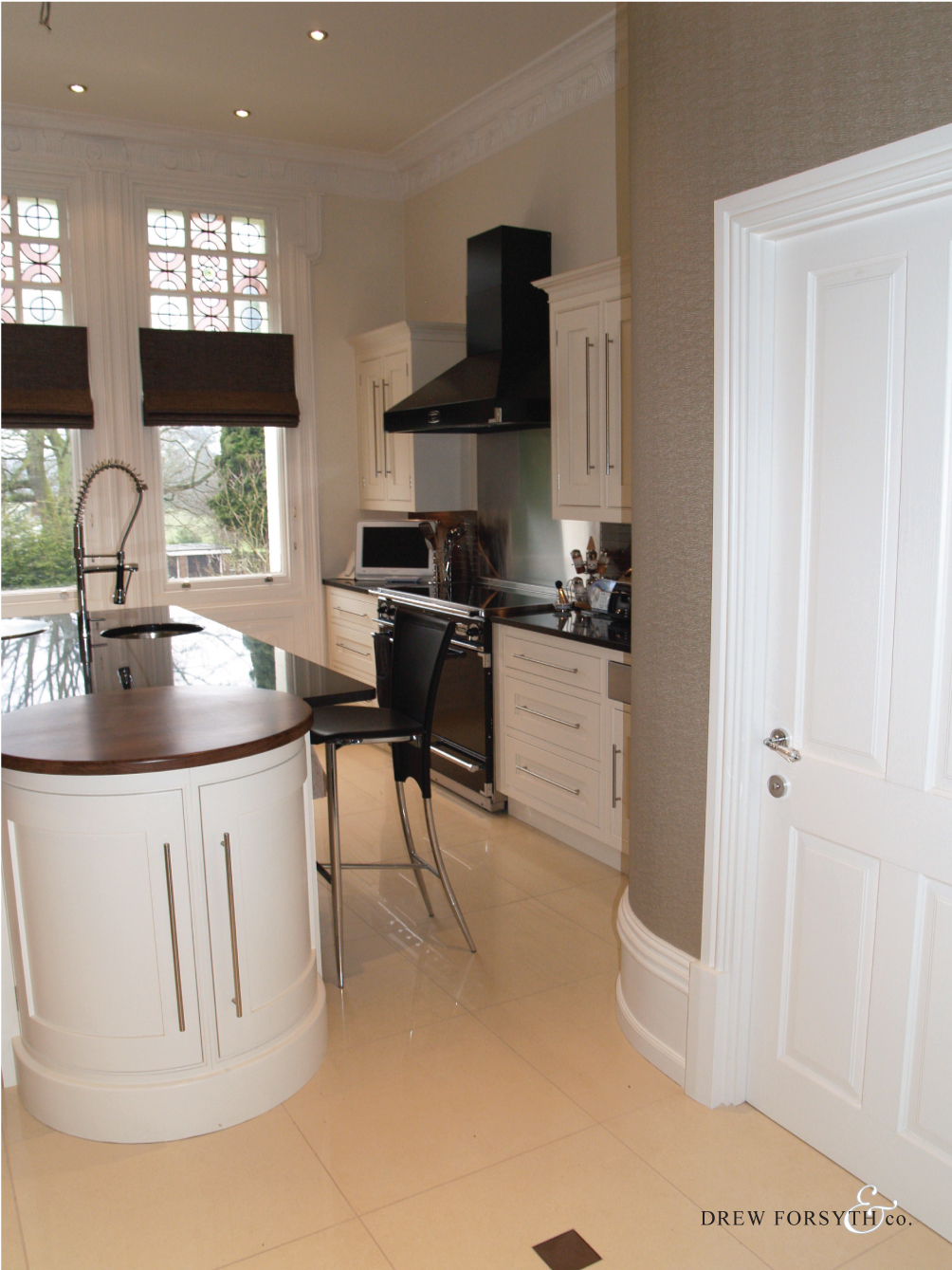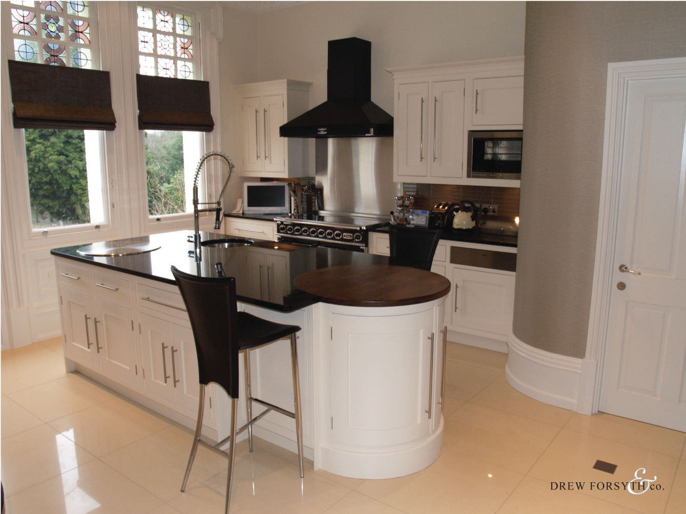 Featuring a black granite work top complimented by white units, this kitchen adds a sense of indulgence to a home.