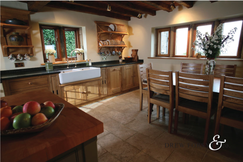 Made from the finest solid oak, this charming kitchen provides a great space for all the family and is packed with character. Timeless quality from Drew Forsyth & co.