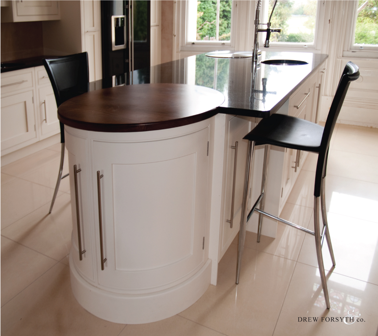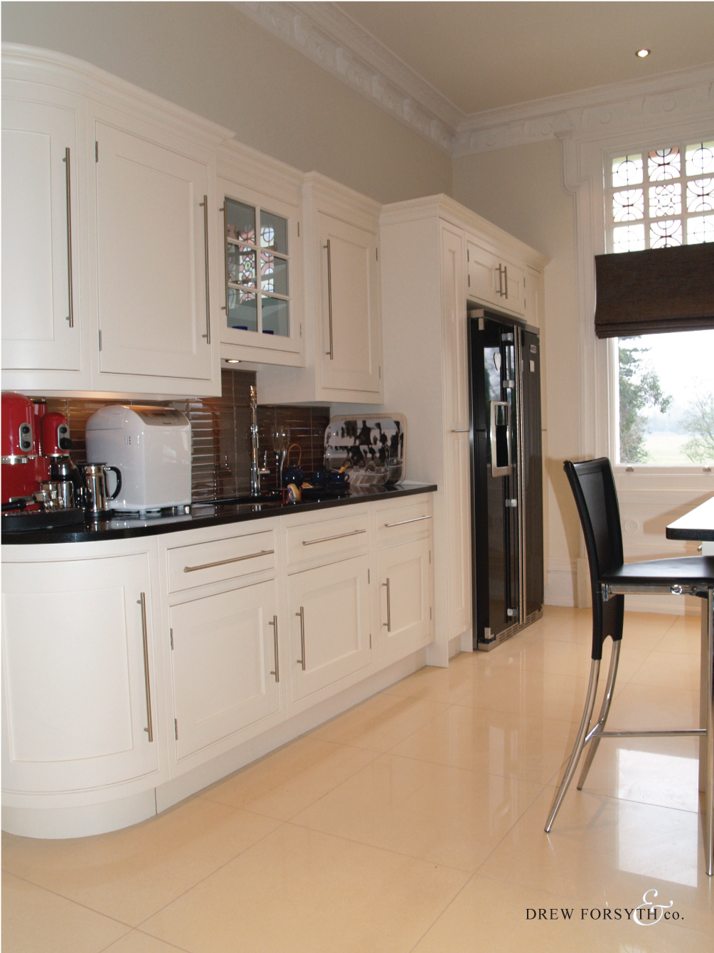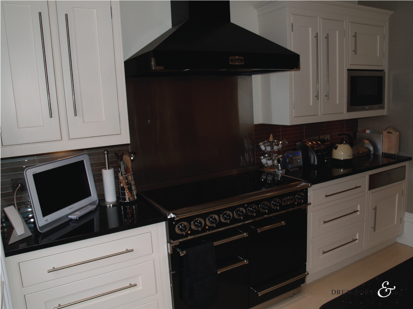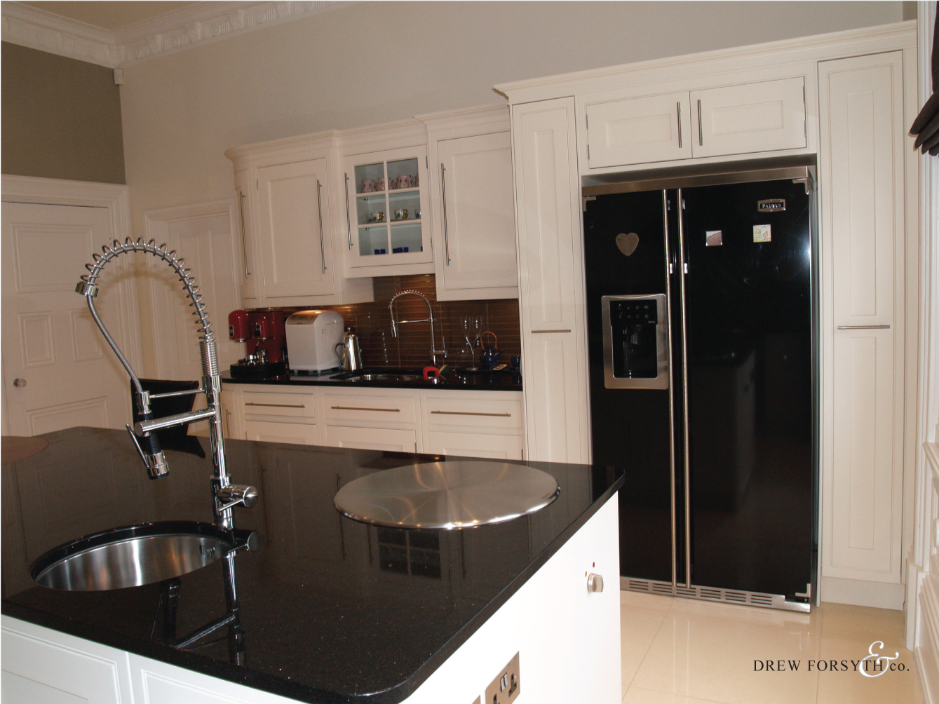 Featuring a black granite work top complimented by white units, this kitchen adds a sense of indulgence to a home.