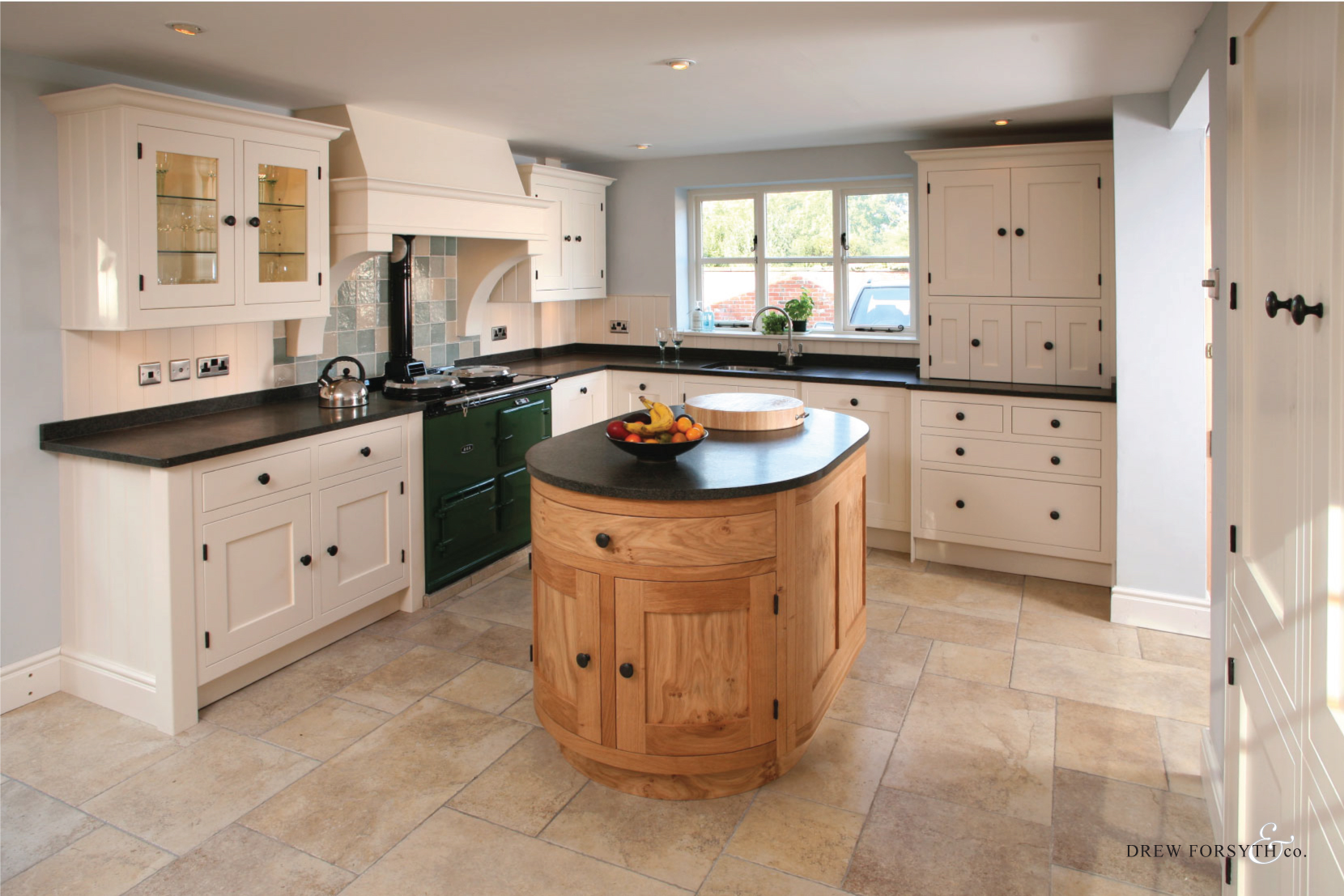 A classic example of a painted finish complimented by a solid oak island with granite worktop. Sheer indulgence.
